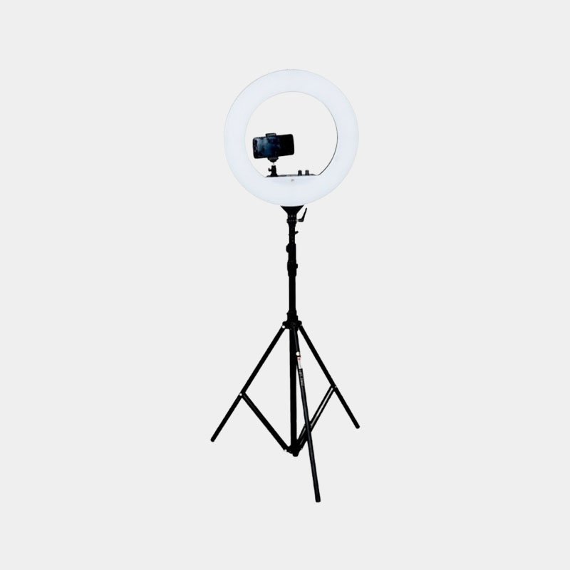 - The ring light is equipped with multiple mounting options, including a sturdy tripod stand and a phone holder, ensuring versatile setup for different devices.