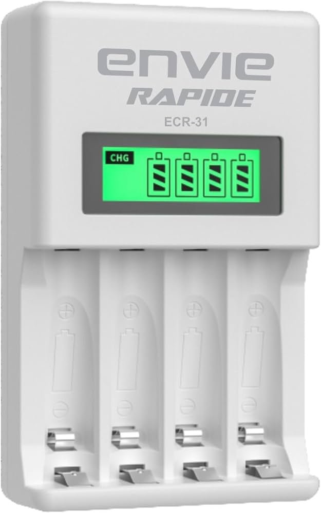 Envie ECR 11 Speedster LCD Charger for AA – AAA Ni-Mh Rechargeable Batteries (White)