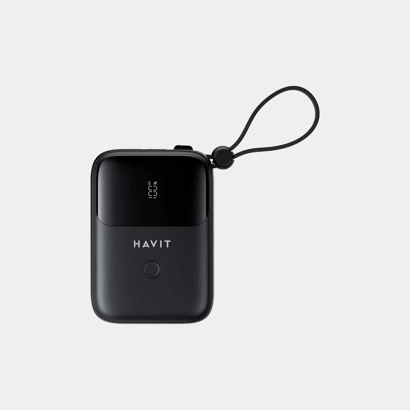 Havit PB5215 10000mAh Black Power Bank with LED Display, USB-C & Lightning Cable