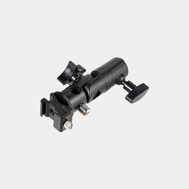 Miaoqian PULUZ Flash Bracket, E Type Universal Metal Flash Hot Shoe Speedlite Umbrella Holder Light Stand Bracket with 1 4″ to 3 8″ Screw Mount Swivel Adapter