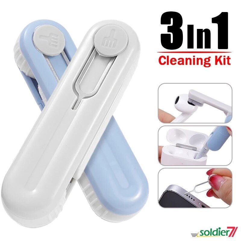 A Mobile Phone Cleaner Set 3 in 1 is a cleaning kit designed to help maintain the cleanliness of your mobile device. It typically includes three tools: a cleaning brush, a microfiber cloth, and a cleaning solution or wipe. These tools work together to remove dust, fingerprints, and smudges from your phone’s screen, buttons, and ports. It’s compact, portable, and ideal for daily phone care, ensuring that your device remains free from dirt and grime.